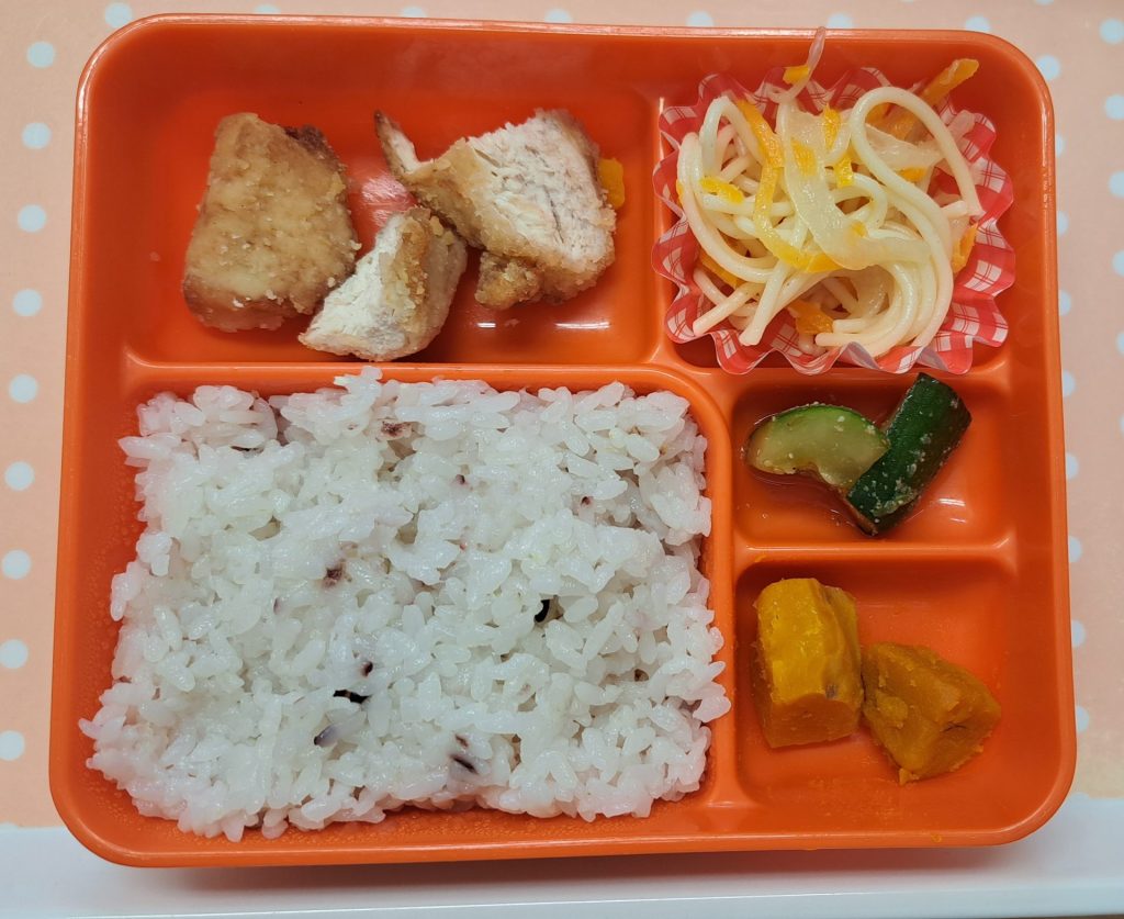 唐揚げ・ペペロンチーノ・きゅうりのコロコロ漬け・南瓜の煮物