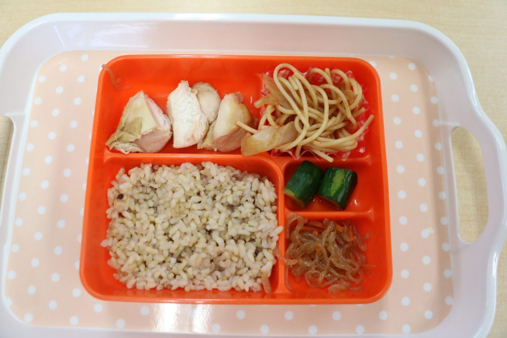 照焼チキン・焼きそば・大根ときゅうりのコロコロ漬け・糸コンと人参の煮物