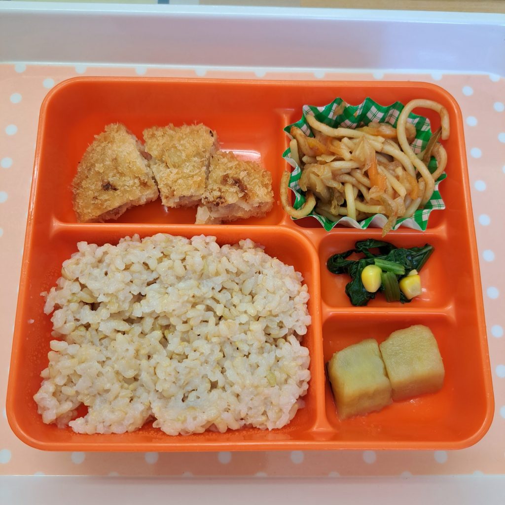 ★肉じゃがコロッケ、さつま芋の甘煮 ほうれん草とコーンの炒め物、焼きそば
