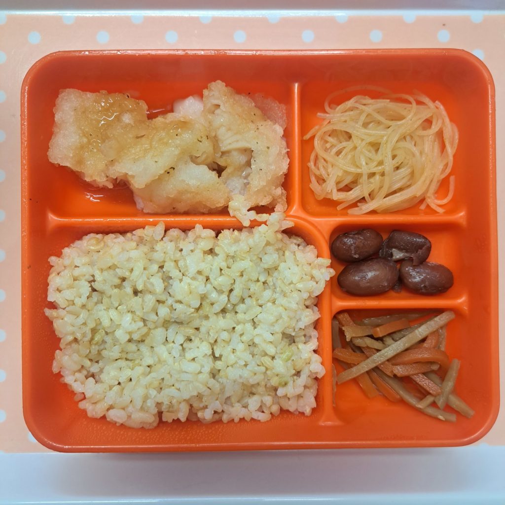 ★白身魚のネギソース、カレー春雨 煮豆、きんぴらごぼう
